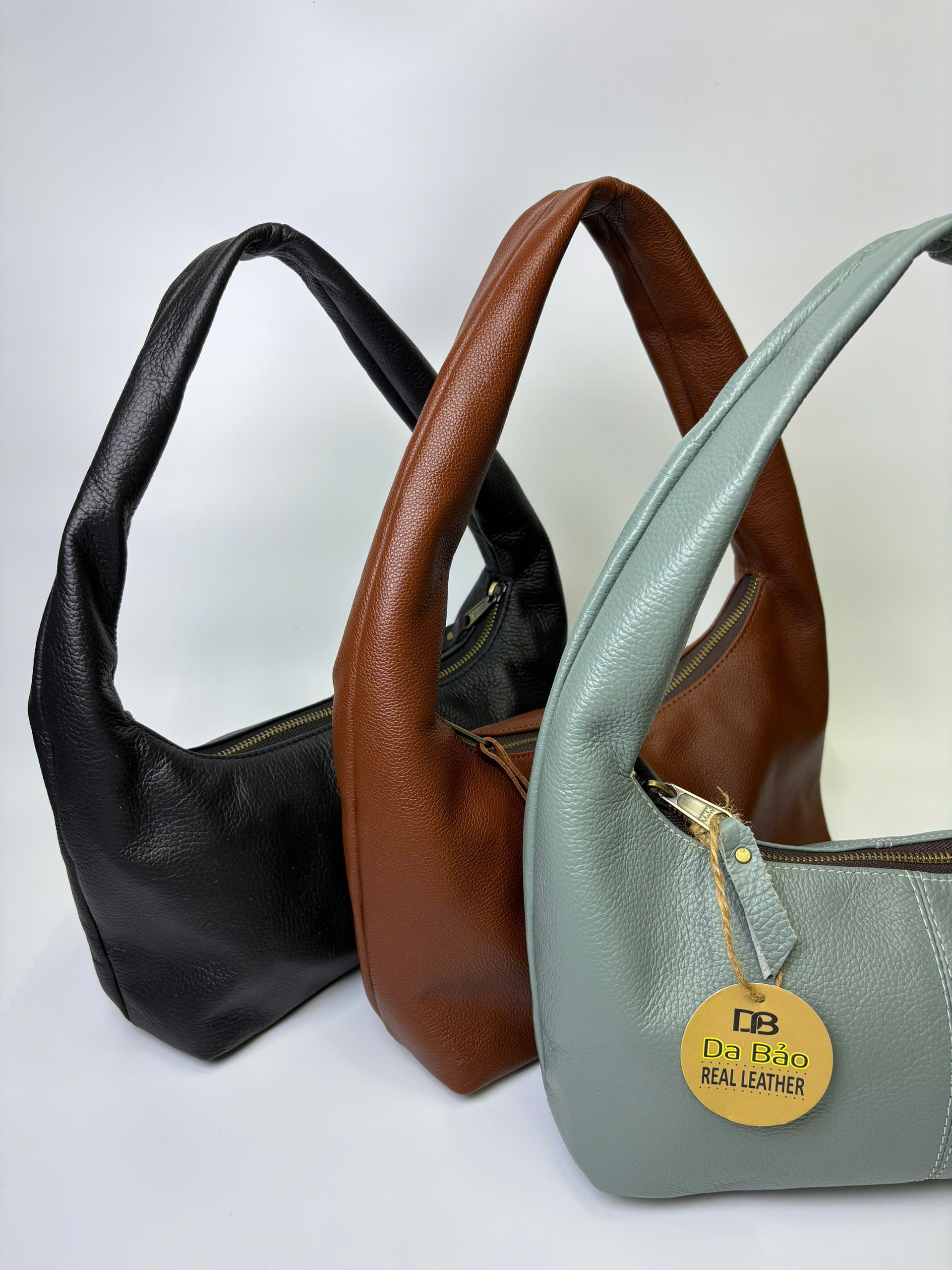Nâng tầm phong cách mỗi ngày với chiếc Túi Hobo bằng da bò thật được chế tác thủ công tinh xảo, do Da Bảo Real Leather tự hào mang đến. Với thiết kế hình bán nguyệt mềm mại và hiện đại, đây là món phụ kiện hoàn hảo cho những người phụ nữ yêu thích sự tinh tế và tiện dụng. Phần quai đeo vai được thiết kế liền mạch, mang lại cảm giác thoải mái và linh hoạt cho mọi dịp, từ đi làm đến dạo phố.